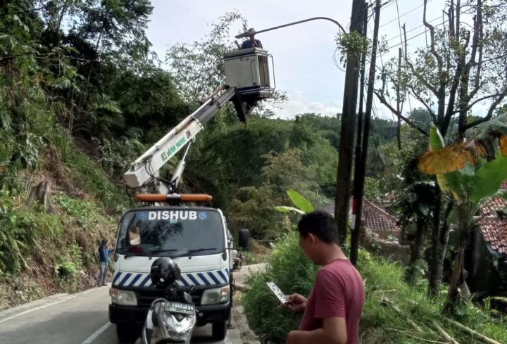 Terima Laporan Lampu Jalan Padam, Dishub UPT Wil IV Leuwiliang Turunkan Tim Teknis Lakukan Perbaikan