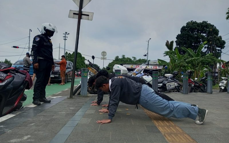Langgar Lalu Lintas, Polisi Hukum 3 Pelajar di Sentul dengan Push Up 150 Kali