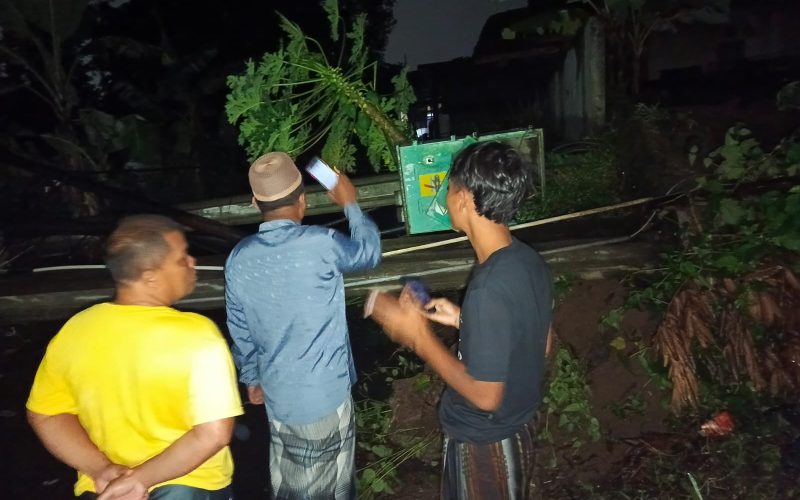 Akibat Keropos, Dua Tiang Listrik di Desa Cihitung Kulon Roboh ke Jalan Hingga Halangi Akses Lalu Lintas