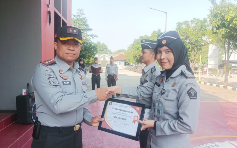 Dua Petugas Lapas Narkotika Gunungsindur Dapat Piagam Penghargaan Pegawai Teladan