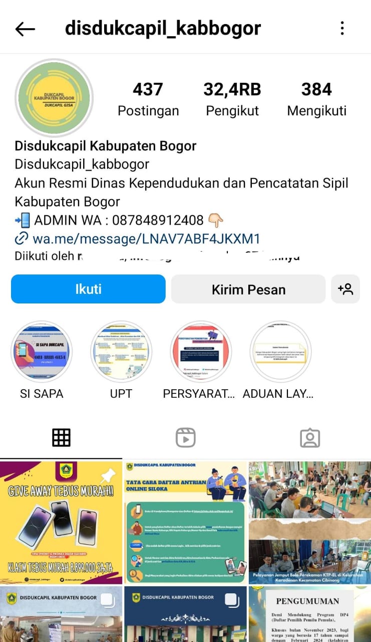 Akun Instagram Disdukcapil Kabupaten Bogor Di-hack, Beri Give Away Iphone 14 Promax