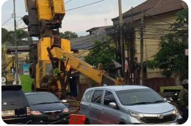 Alat Berat Crane Terbalik di Jalan Mayor Oking Gegara Tak Kuat Angkat Beban