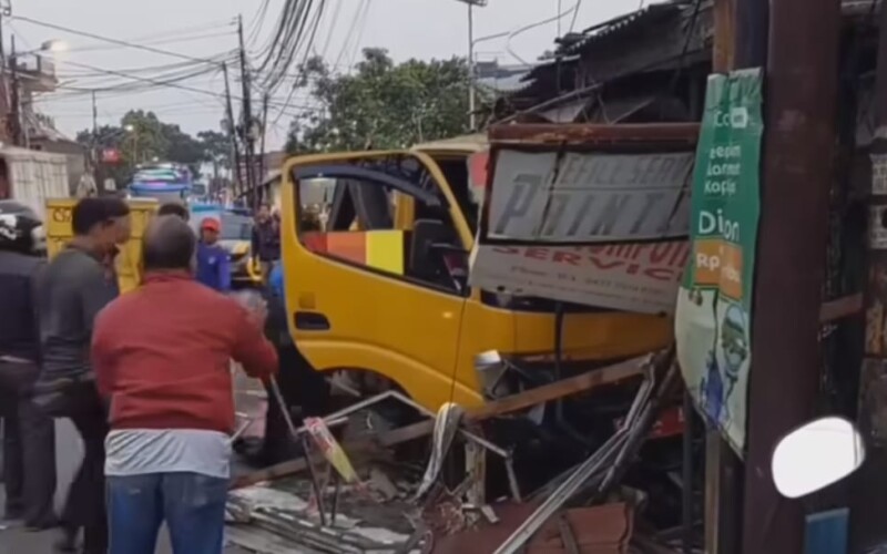 4 Kios di Jalan Brigjen Saptadji Hancur Diseruduk Truk DLH Bogor