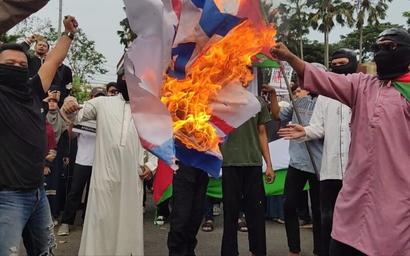 Aksi Bela Palestina di Tugu Kujang, Masa Bakar Bendera Israel