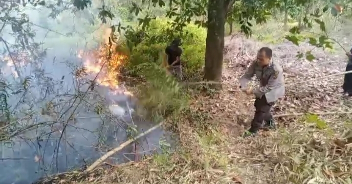 Heroik! Aksi Polsek Leuwiliang Padamkan Api di Kawasan Lereng Perumahan Grandsutra Leuwiliang.