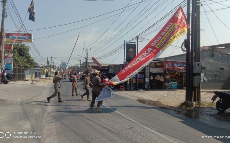 Satpol PP Bredel Spanduk Bodong Promosi Rokok dan Perumahan