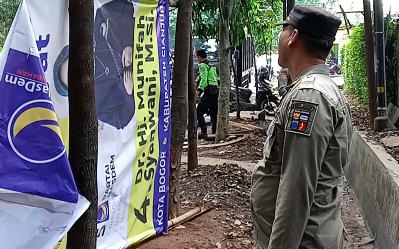 Satpol PP dan Bawaslu Kota Bogor Lakukan Penertiban APK yang Melanggar Aturan