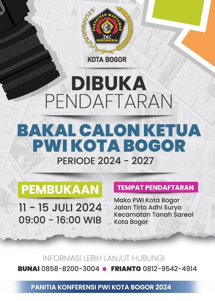 Mediabogor.co, BOGOR – Konferensi Persatuan Wartawan Indonesia (PWI) Kota Bogor tahun 2024 akan segera digelar. Kepastian dilaksanakannya agenda tiga tahunan tersebut setelah jajaran pengurus...