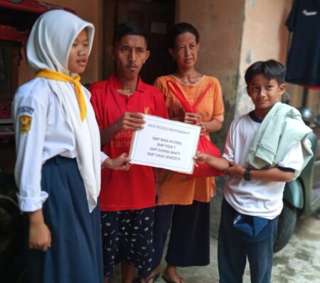 MEDIABOGOR.CO, Bogor- OSIS (Organisasi Siswa Intra Sekolah) SMP (Sekolah Menengah Pertama) dari empat sekolah swasta di Kota Bogor, yaitu SMP BINA PUTRA, SMP DHARMA BAHKTI, SMP DASA SEMESTA, dan SMP PGRI 7, menyelenggarakan kegiatan BAKTI SOSIAL (Baksos) sebagai bentuk pengisi waktu libur semester setelah penyerahan raport.