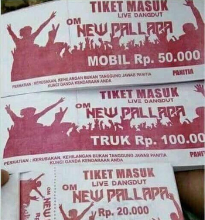 Melalui grup Facebook, seorang pengguna bernama Es EN Dhi memotret karcis parkir di pertunjukan dangdut yang kebetulan diadakan di Pati, Jawa Tengah. Harga yang tertera pada karcis tersebut terbilang mencengangkan!